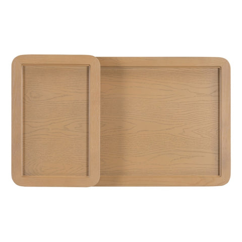 Discover this space-efficient coffee table set, featuring a nested design showcasing versatility. The smaller table nests neatly beneath the larger, with staggered heights for an eye-catching, harmonious look.