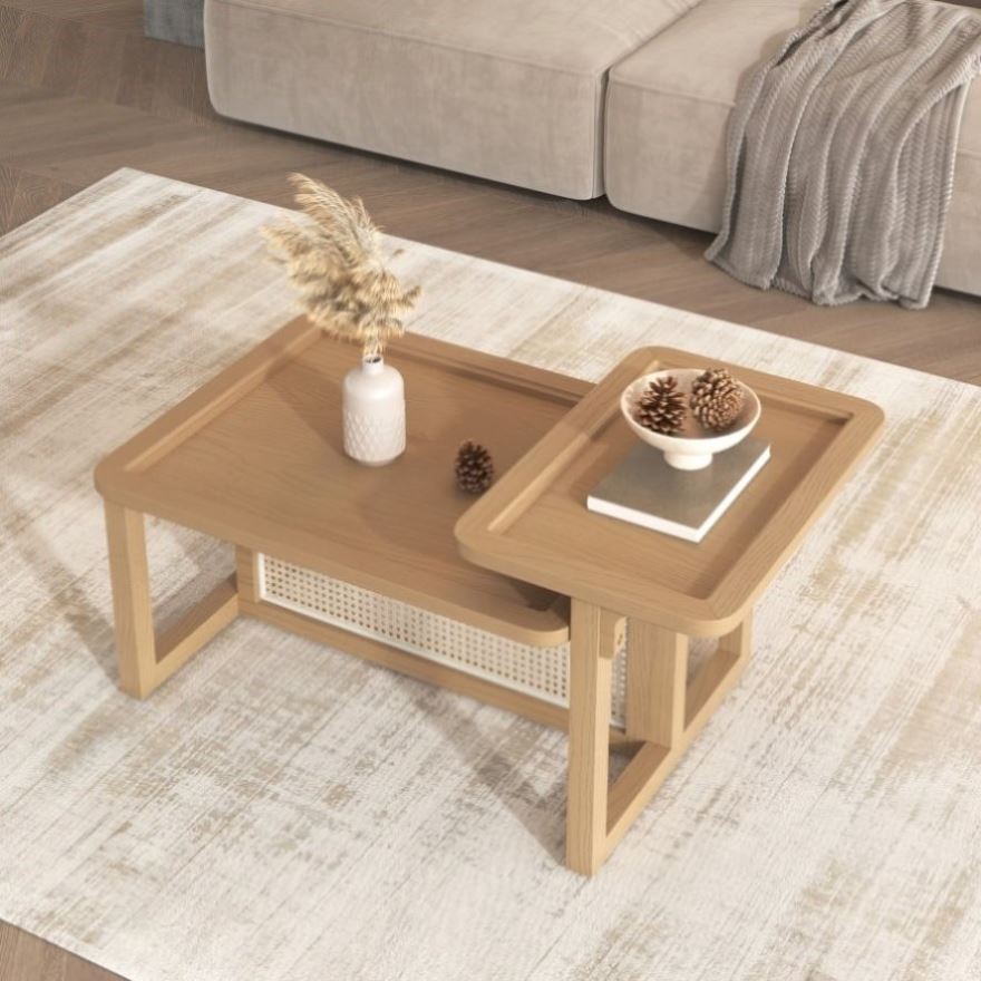 Crafted with meticulous care, these coffee tables flaunt sleek lines and flawless edges, embodying a truly modern aesthetic. The incorporation of premium natural pine wood and rattan adds a touch of warmth and sophistication.