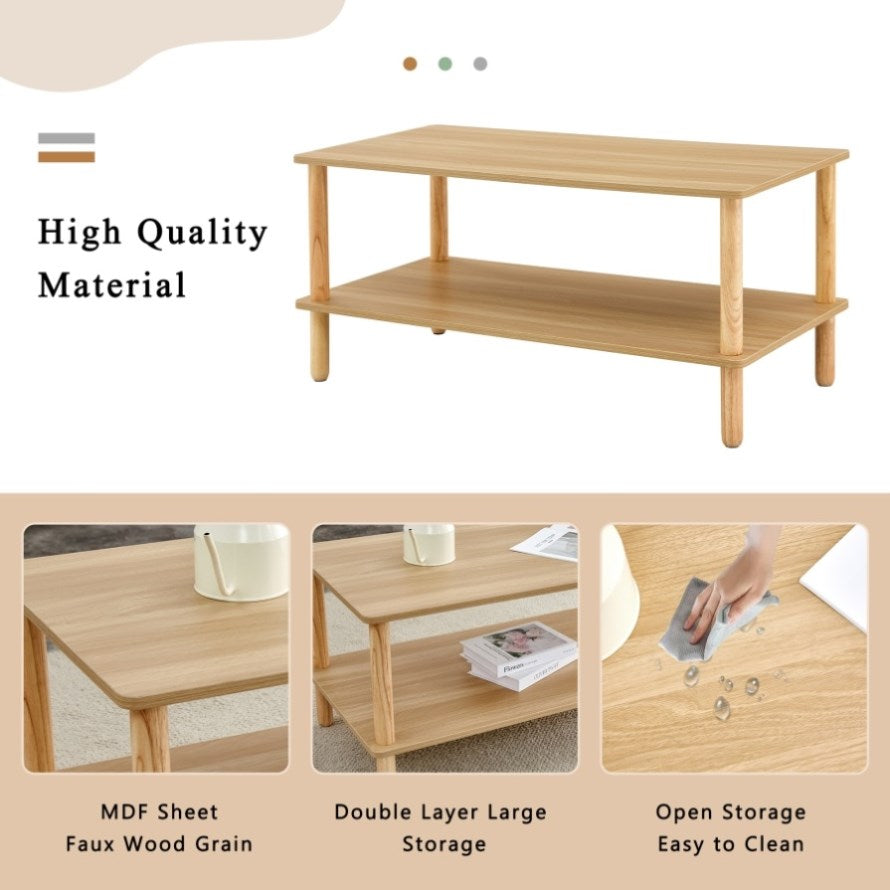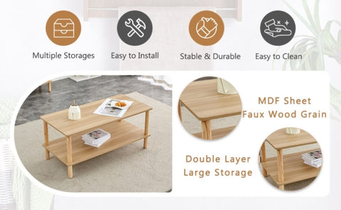 Modern 2-Tier Coffee Table for Living Room Furniture,Rectangular Center Table with Open Storage W3226P279107