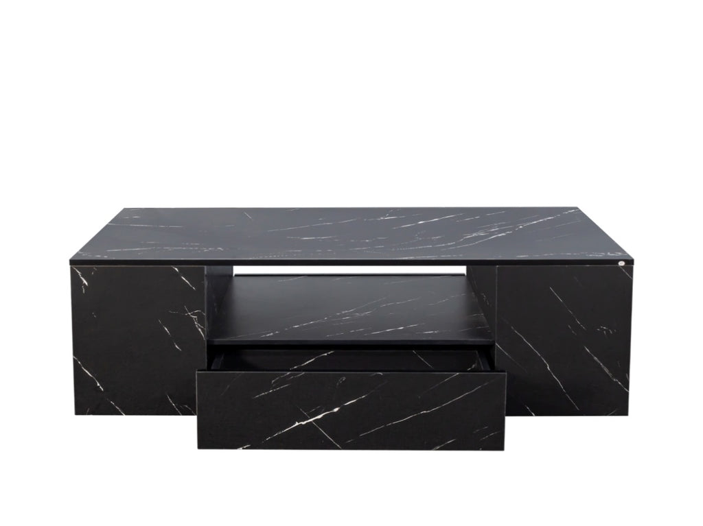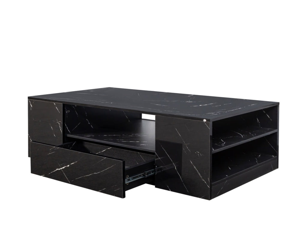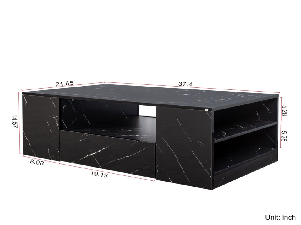 Coffee Table with Storage: Our coffee table features spacious open storage, side storage compartments, and two drawers, allowing you to neatly organize and store all your essentials, keeping your space clutter-free.