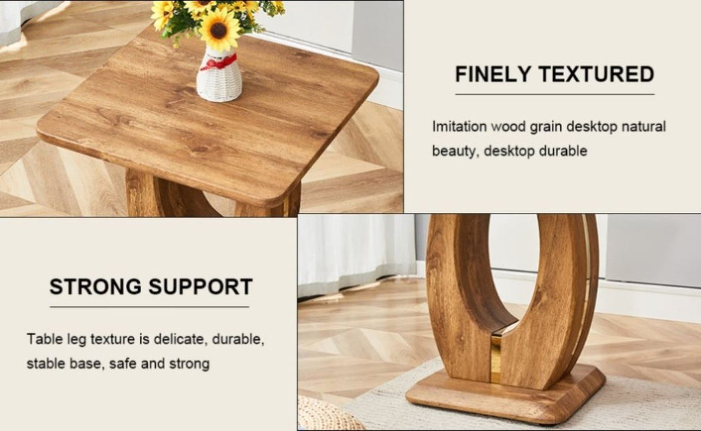 Wood color grain stickers Design: The coffee table is made of MDF material with Wood grain stickers, simple yet elegant.Gold Plated Decorative Strips: The support part is adorned with gold plated decorative strips, adding a touch of luxury to the coffee table.
