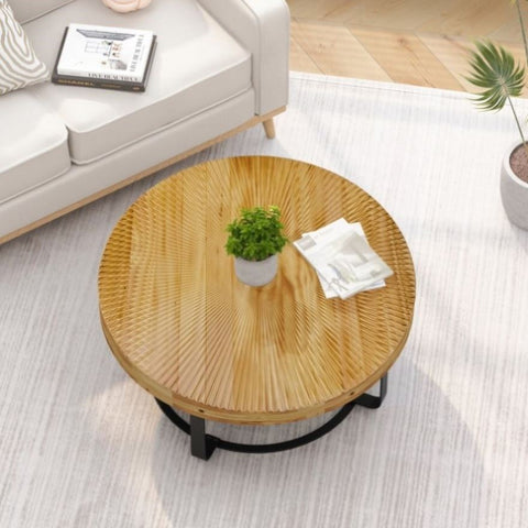 STYLISH DESIGN: Featuring a carved natural pine finish and a timeless 6-curved steel frame design, this modern round coffee table complements any personal taste and interior style, whether it's minimalist or luxurious. It is a timeless piece of furniture that is perfect for the living room, office or reception room.