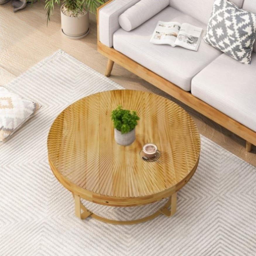 STRONG AND DURABLE: The top of this round coffee table is carved using solid pine wood, the sides are pieced together using fir wood and reinforced with selected MDF, while the base is made of metal, which adds strength and durability as well as ensures longevity.