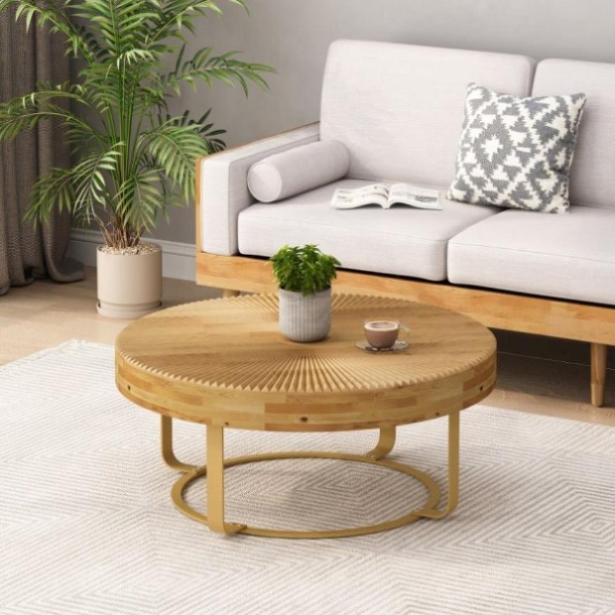 STYLISH DESIGN: Featuring a carved natural pine finish and a timeless 6-curved steel frame design, this modern round coffee table complements any personal taste and interior style, whether it's minimalist or luxurious. It is a timeless piece of furniture that is perfect for the living room, office or reception room.