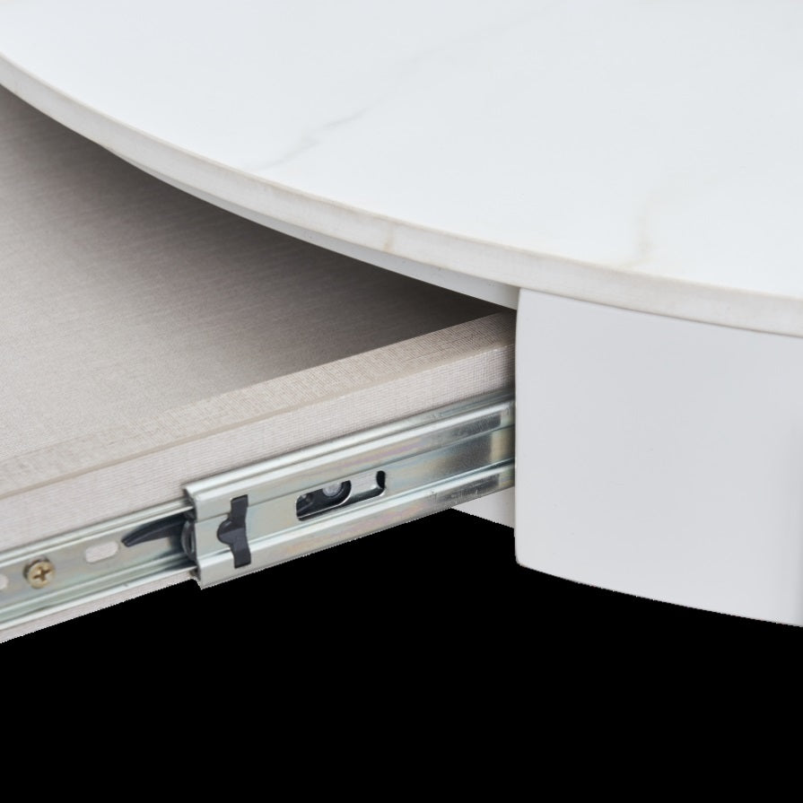Modern Round White & reall wood color Coffee Table Drawers and metal legs,Drum Coffee Table W1911P269601