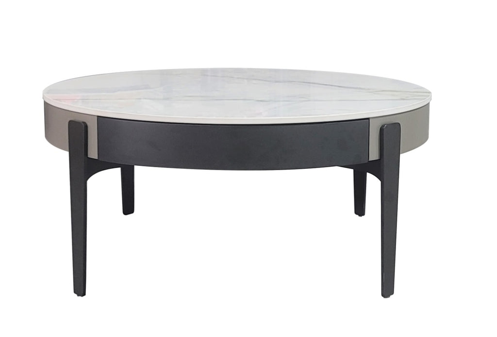 Elegance & FashionableFeatures a sintered stone tabletop, the sleek silhouette is accentuated by a sophisticated smoked wood veneer, this round coffee table creating a harmonious blend of classic charm and modern allure.
