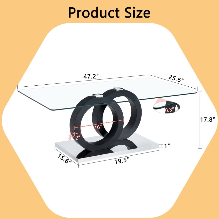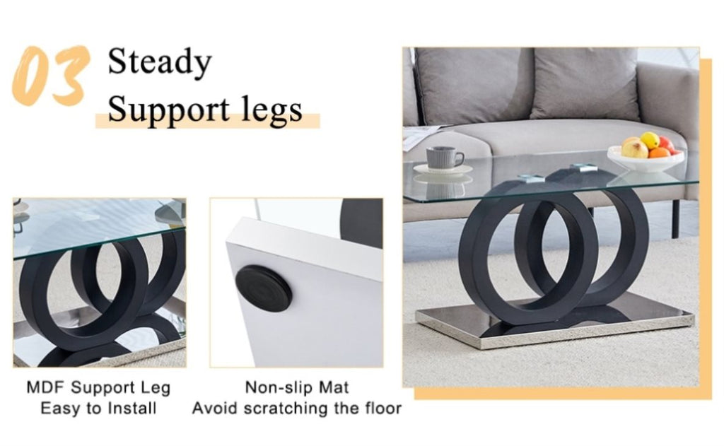 Circular Support Structure: The support structure of the coffee table is designed with two interconnected circles, a unique design that is not only beautiful but also reflects elements of modern art.