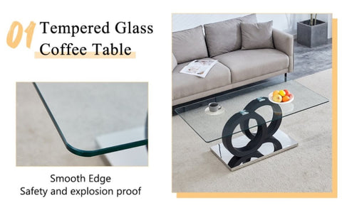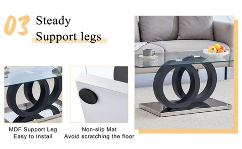 Modern Style Glass Top MDF Coffee Table Black Base, Suitable for Living Rooms and Lounge Areas, W3226P279046