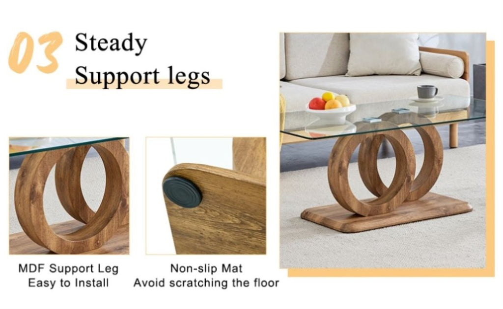 Circular Support Structure: The support structure of the coffee table is designed with two interconnected circles, a unique design that is not only beautiful but also reflects elements of modern art.