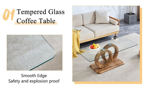 Modern Style Glass Top MDF Coffee Table with Natural Wood Color Base - Suitable for Living Rooms and W3226P279048