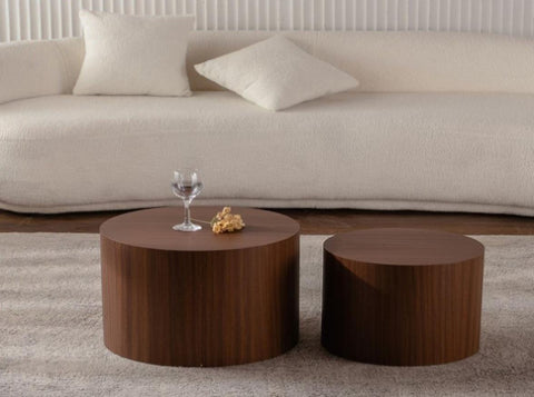 Nesting Coffee Table Set of 2 Round Wooden Coffee Tables Circle Modern Table for Small Space Living W3081P255157