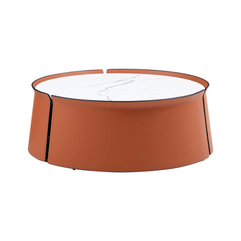 (NOT available on wayfair) 31.5inch Coffee Table, Marble TopOrange Saddle Leather BodyIron Frame W876107735