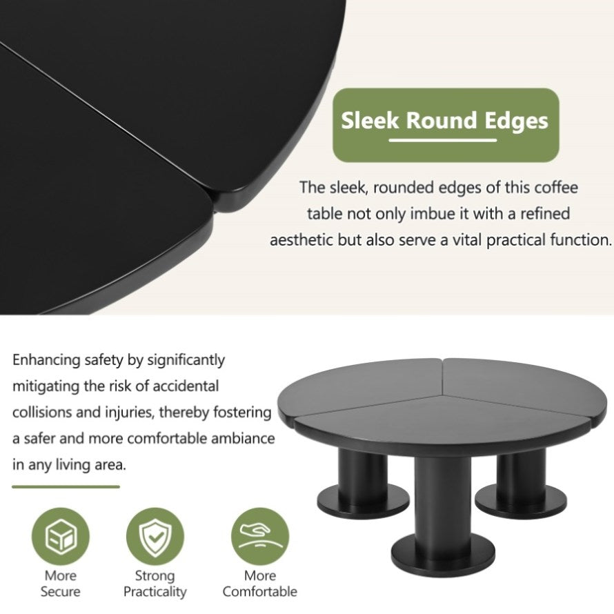 This coffee table stands out with its three sturdy legs, ensuring stability and durability. Boasting a 6.3" thick leg and 11.8" wide chassis, it resists shakes, providing a reliable foundation. While its smooth surface simplifies cleaning, eliminating hard-to-reach areas, making maintenance effortle