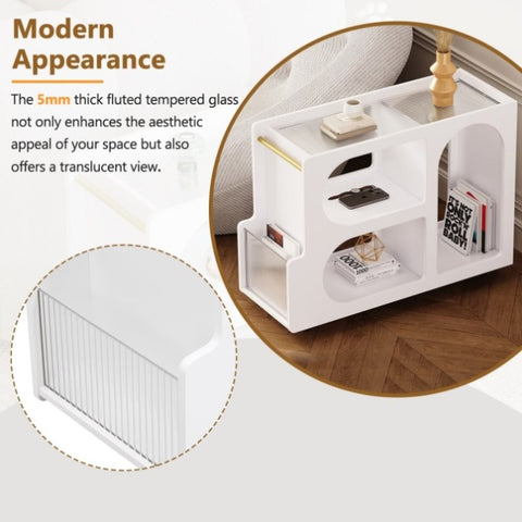 ON-TREND Mobile End Table with Lockable Wheels, Narrow Coffee Table with 5mm Thick Fluted Tempered N721P179241K