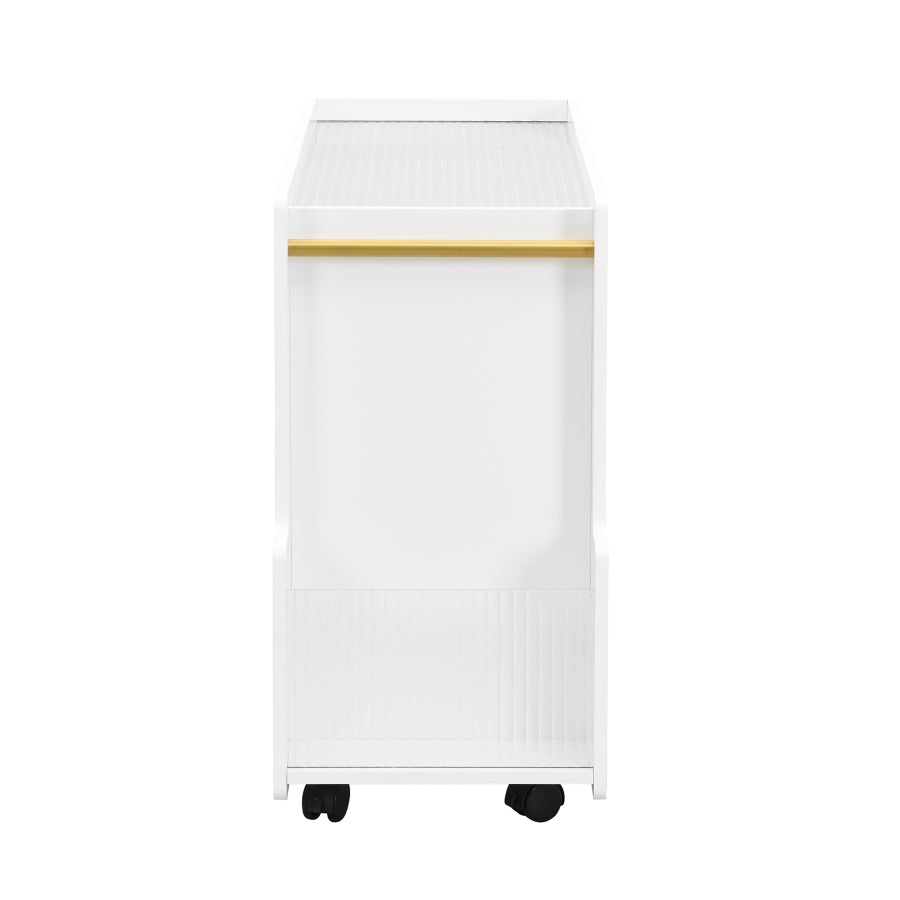 The 5mm thick fluted tempered glass not only enhances the aesthetic appeal of your space but also offers a translucent view, ideal for showcasing your favorite items. The arched side panels add a touch of stylish and simplicity to the overall design, making it a chic addition to your room.