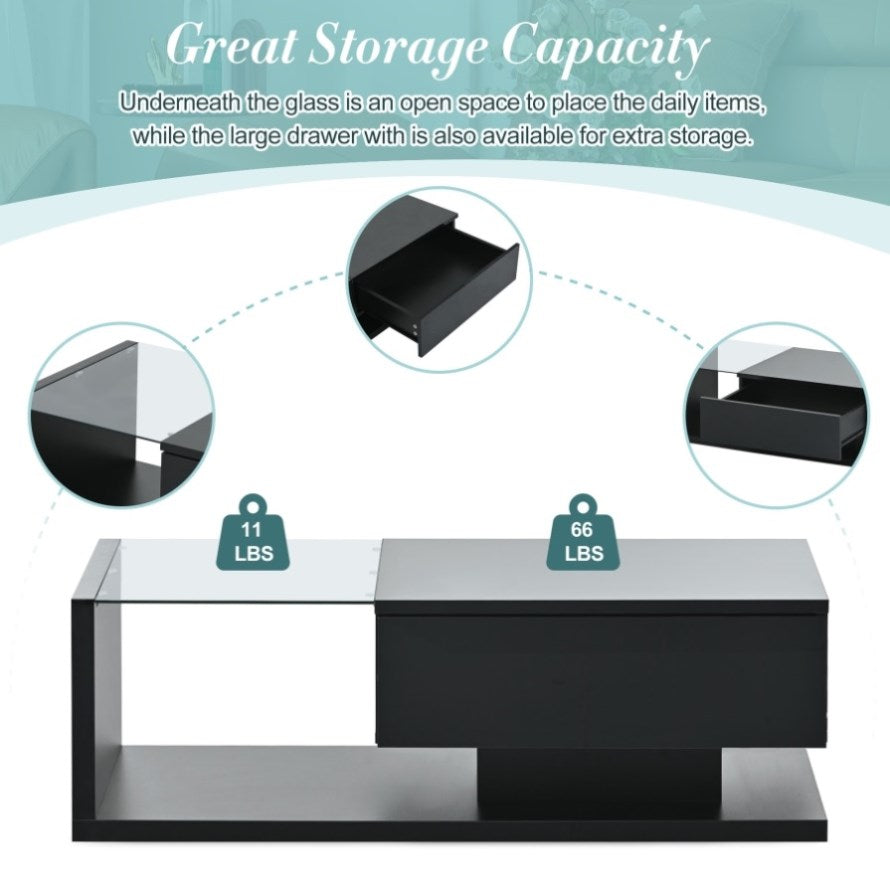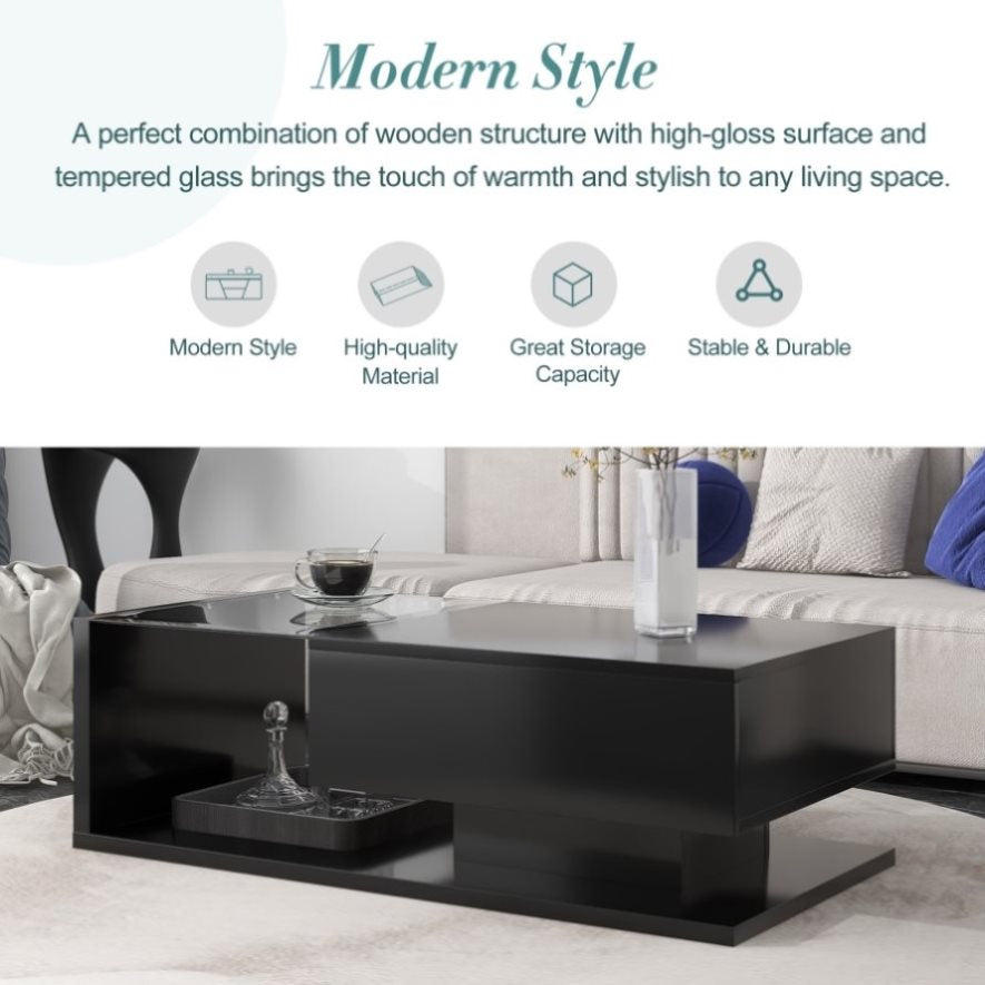 A perfect combination of wooden structure with high-gloss surface and tempered glass brings the touch of warmth and stylish to any living space.