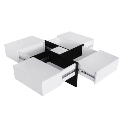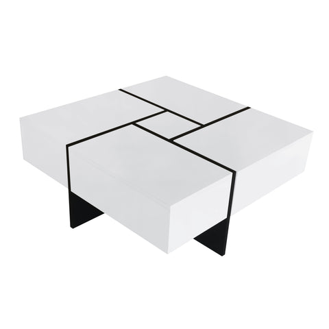 ON-TREND Unique Design Coffee Table with 4 Hidden Storage Compartments, Square Cocktail Table with WF305182AAK
