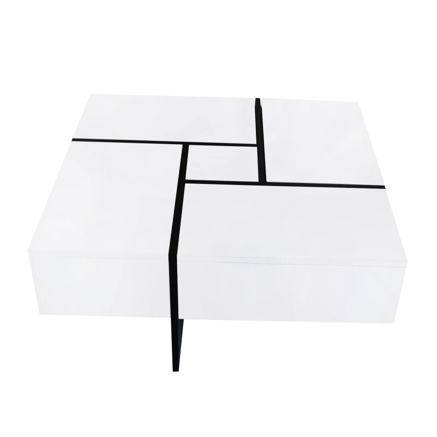 The square tabletop coated with stunning surface is divided into five sections by four straight lines, adding an interesting puzzle designed, which gives this coffee table an eye-catching look and sets it apart from traditional ones.