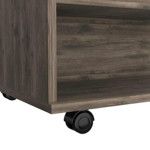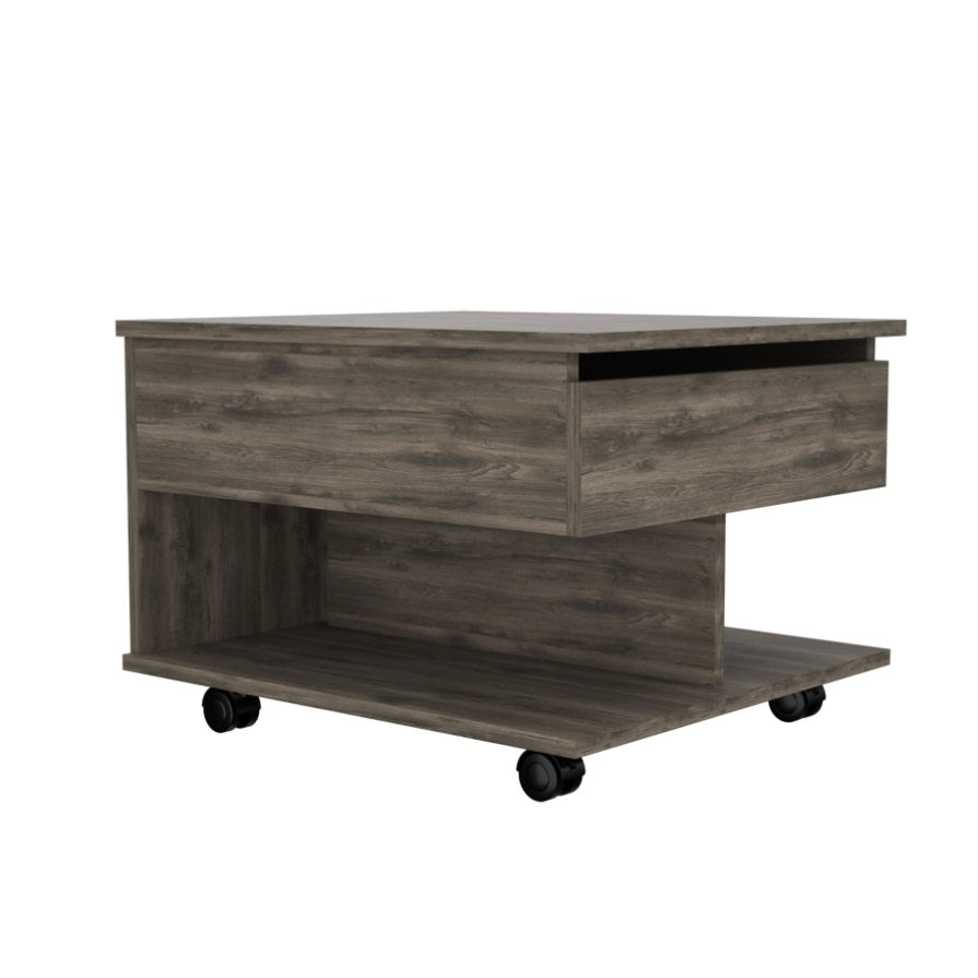 We present you the beautiful Portland Black l mobile coffee table, with its practical, modern, and straightforward design that will amaze your living room. The Portland Charcoal mobile coffee table is very suitable for versatile and practical people because of its adaptability in any space of your living room, thanks to its small size. The easy mobility that gives it its wheels and an adaptable design provided by its lifting top that offers a wide surface that opens a storage compartment where you can store books, board games, remotes, etc. Also, for its open bottom shelf, you can use it to put your favorite ornaments and beautify the coffee table even more. The dimensions of the top are 21.6W x 19.6D. The coffee table reaches 18 in height, fully raised. The Portland Charcoal mobile coffee table Includes four casters with a locking mechanism. It is made of manufactured wood in a dark brown finish