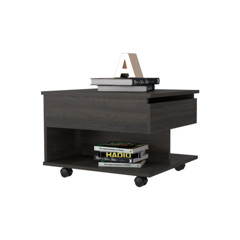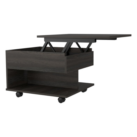 "We present you the beautiful Portland Charcoal mobile coffee table, with its practical, modern, and straightforward design that will amaze your living room. The Portland Charcoal mobile coffee table is very suitable for versatile and practical people because of its adaptability in any space of your living room, thanks to its small size. The easy mobility that gives it its wheels and an adaptable design provided by its lifting top that offers a wide surface that opens a storage compartment where you can store books, board games, remotes, etc. Also, you can use it for its open bottom shelf to put your favorite ornaments and beautify the coffee table even more.