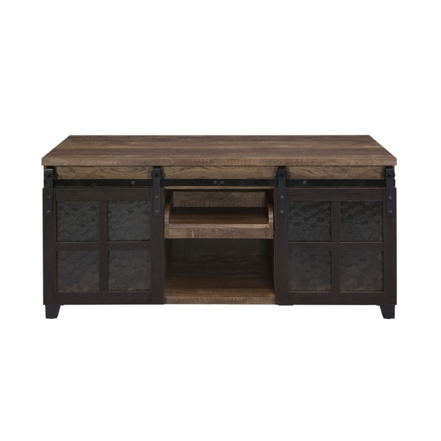 Rustic Oak and Black Coffee Table with Sliding Doors B062P181396
