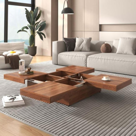 The Square Walnut Veneer MDF Coffee Table with Sliding Top combines style and functionality, offering a chic centerpiece for your living room while providing ample storage space. Experience the elegance and convenience it brings to your home today!