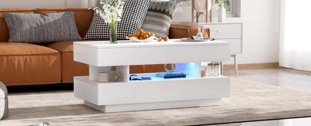16-Color LED StripsThis coffee table's 16 - color LED strips softly light the lower space. Ideal for evenings, they create a cozy vibe. Customizable hues help set the mood, easily turning your living area into a warm, stylish spot.