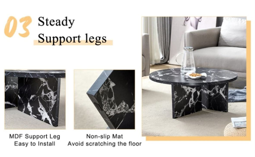 High-Quality Materials: This round coffee table is made from high-density and uniform MDF material, providing excellent stability and durability. It also has good impact resistance, able to withstand bumps and impacts in daily life. Maintenance is relatively simple, just wipe with a mild cleaner and a soft cloth.