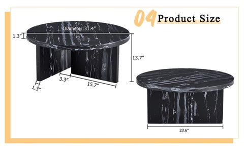 Perfect Size for Multiple Uses: This living room round marble coffee table has a diameter of 31.50 inches and a height of 13.98 inches, meticulously designed to seamlessly integrate into various living room settings. Its compact yet spacious surface makes it an ideal choice for serving snacks, displaying decorations, or simply enjoying leisurely gatherings.
