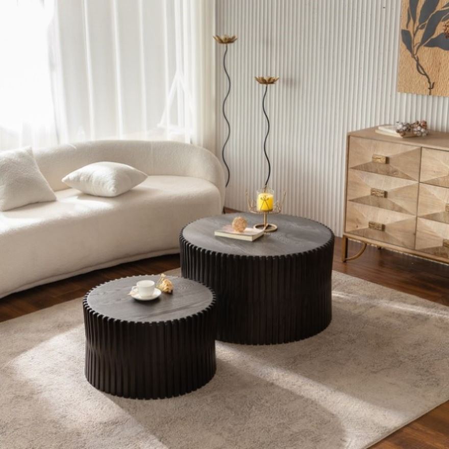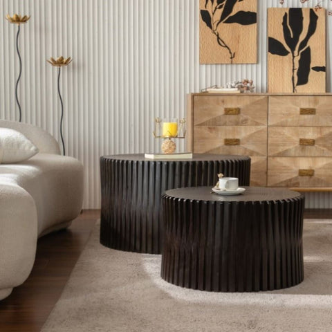 Vintage Fashion Style Cylindrical Nesting Coffee Table Set with Vertical Textured Embossed Design W757P264674