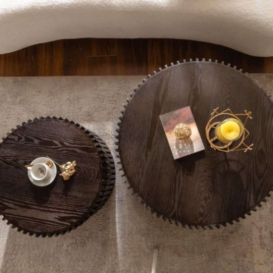 MULTIPURPOSE:Inlaid two-piece set can be used together or divided into different parts. The large coffee table is hollowed out, so you can put the small coffee table inside when you don't need it to save space.