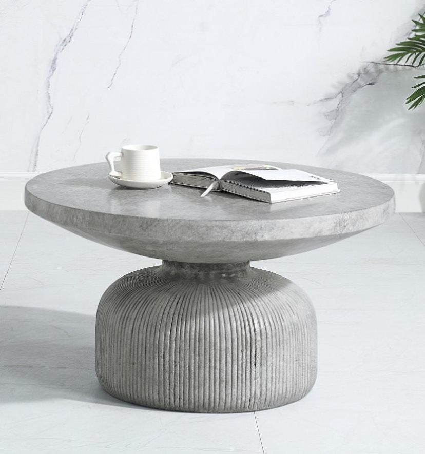Weathered Grey Coffee Table with Round Top and Pedestal Base B062P209094