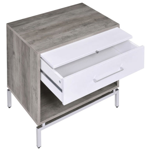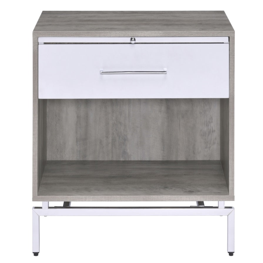 One drawer provides discreet storage for smaller items, while the open compartment offers easy access to frequently used items or decorations