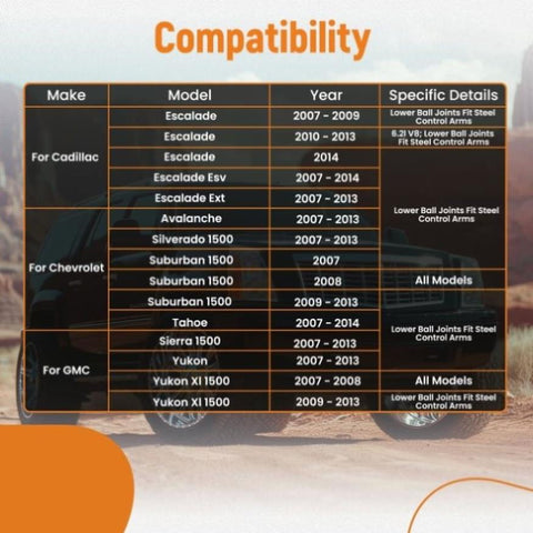 FOR CADILLAC    ESCALADE    2014    Lower Ball Joints Fit Steel Control Arms