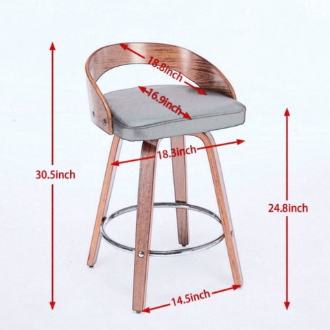Bar Stools Set of 2, Swivel Bar Height Stools with Low Back, Wood Bar Chairs with Soft Cushion Seat, W1143P173432