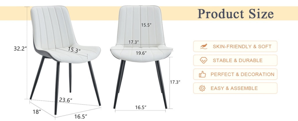Soft Embrace of Artificial Leather Chairs: The Dark Gray and White Splicing Colors artificial leather chair seats, with an integrated seat and backrest, offer a warm embrace, making every sit a moment of enjoyment.