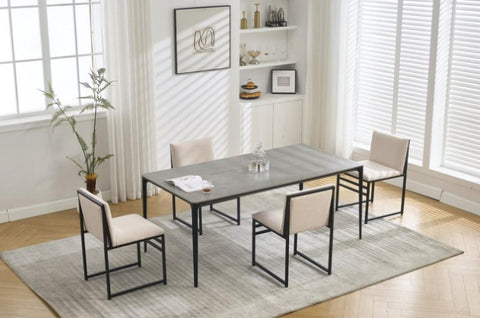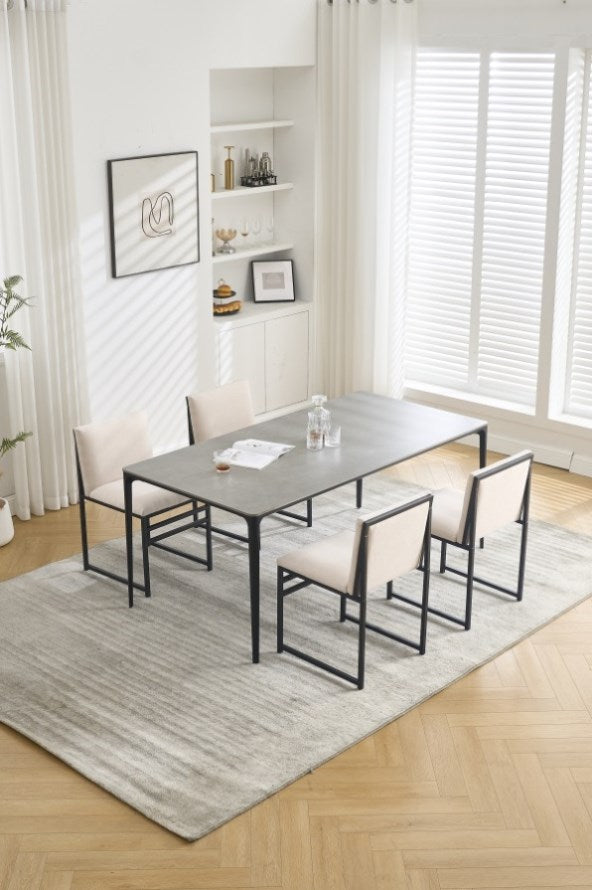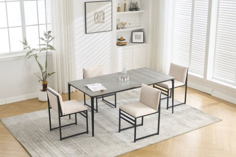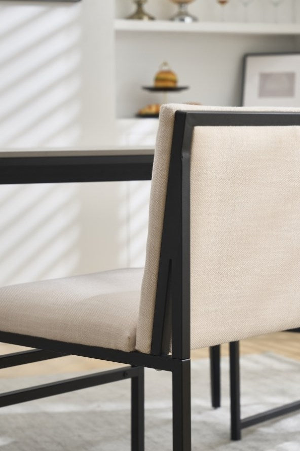 Modern Dining Chairs set of 2, Upholstered Linen cushions and backrest with minimalist craft iron W1249P257011