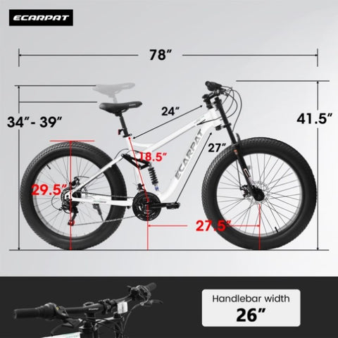 A26309 26 inch Mountain Bike,Full-Suspension 21 Speeds Drivetrain with Disc-Brake MTB Bicycle, 26*4" W709P291973