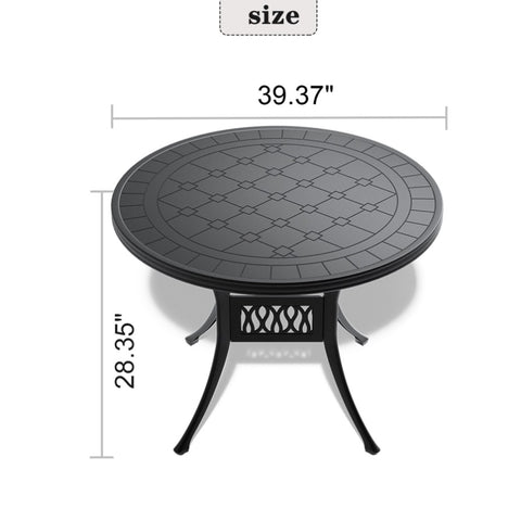 39.37-inch Cast Aluminum Patio Dining Table with Black Frame and Carved Texture on the Tabletop W1710P166011