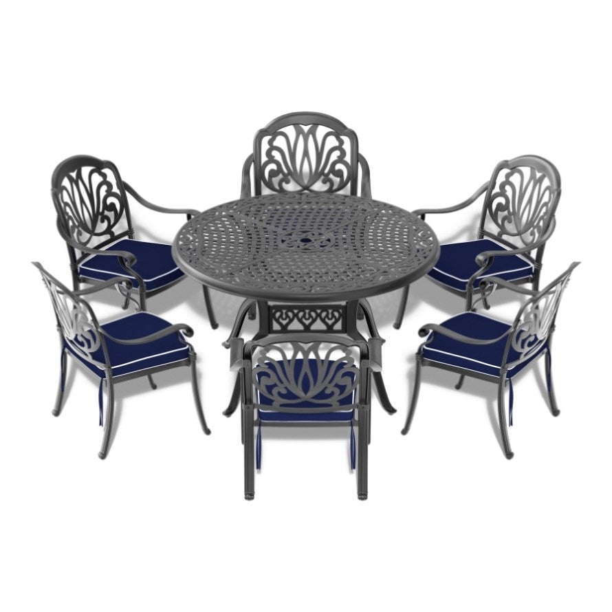 48-inch Cast Aluminum Patio Dining Table with Black Frame and Umbrella Hole W1710P166023
