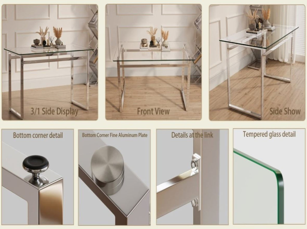 3.Tempered Glass Kitchen Table: Crafted from 8mm thick tempered glass, this dining table is not only an eye-catching centerpiece but also incredibly durable, resistant to scratches and everyday wear.