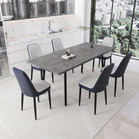 55.12-70.87" expandable rectangular dining table that can accommodate 4-6 people, equipped with 6 PU 31002159