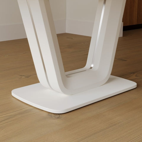 - 4.Comfortable dining table for 2-6 people: Made of comfortable medium density fiberboard material, its beauty lies in its texture and glossy charm. Elegant light gray, with a smooth surface like jade. The natural texture of the desktop complements the minimalist new U-shaped legs. The table legs equipped with sturdy bases not only greatly enhance support, but also highlight the beauty of simple structures, meeting people's needs for comfort and minimalist living.
