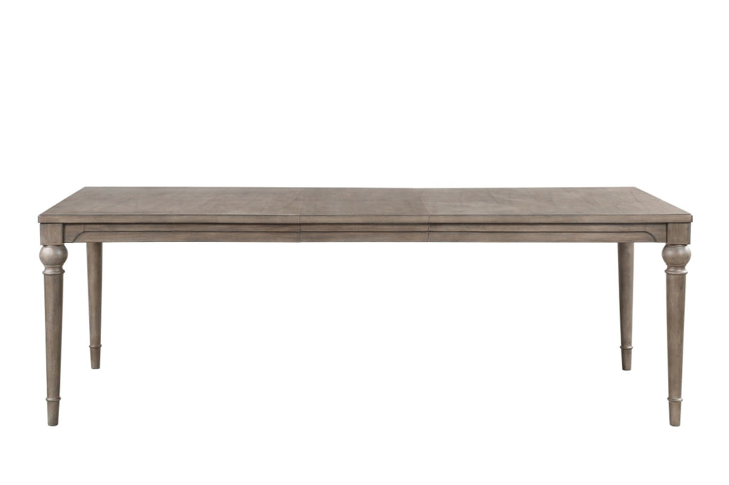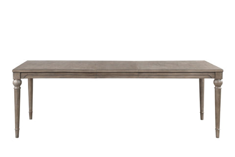 This 72 inch Dining Table flawlessly combines an old world heirloom feel with modern styling. Brilliantly crafted from Poplar Solids and Exotic Mindi Veneers, this dining table features a distressed Vintage Hazel finish and four turned legs. Subtle curves and detailing on the apron and legs ensure this table will easily complement a mix of upholstered and wood dining chairs. This table extends to 90 inches with the 18 inch (included) leaf and comfortably seats eight making this table a smart and sophisticated choice for your dining room or kitchen. Minimal assembly is required to attach the legs to the table top.