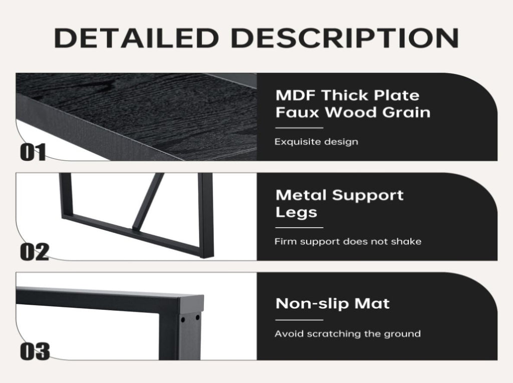 Unique texture: The desktop features black grain, presenting a unique grain pattern, with strong visual impact and artistic sense. Add a sense of luxury and artistic atmosphere to the space, and elevate the overall decoration level.