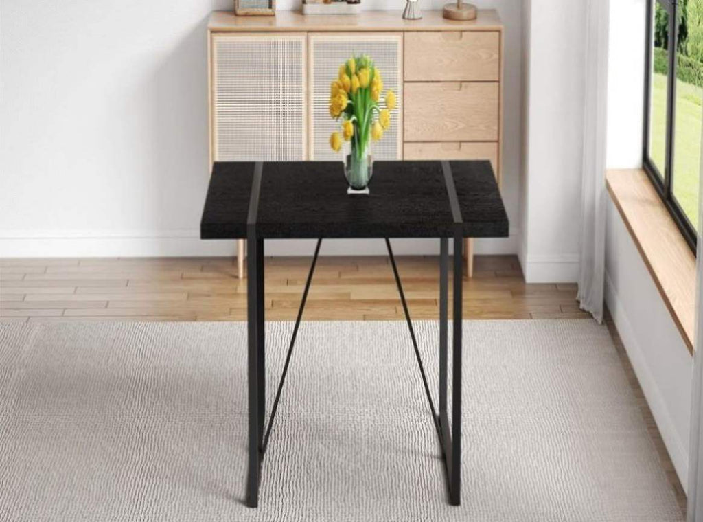 Inset Rectangular Metal Legs: The legs feature two rectangular black metal frames, inset within the table, tightly connected to the tabletop for stability.