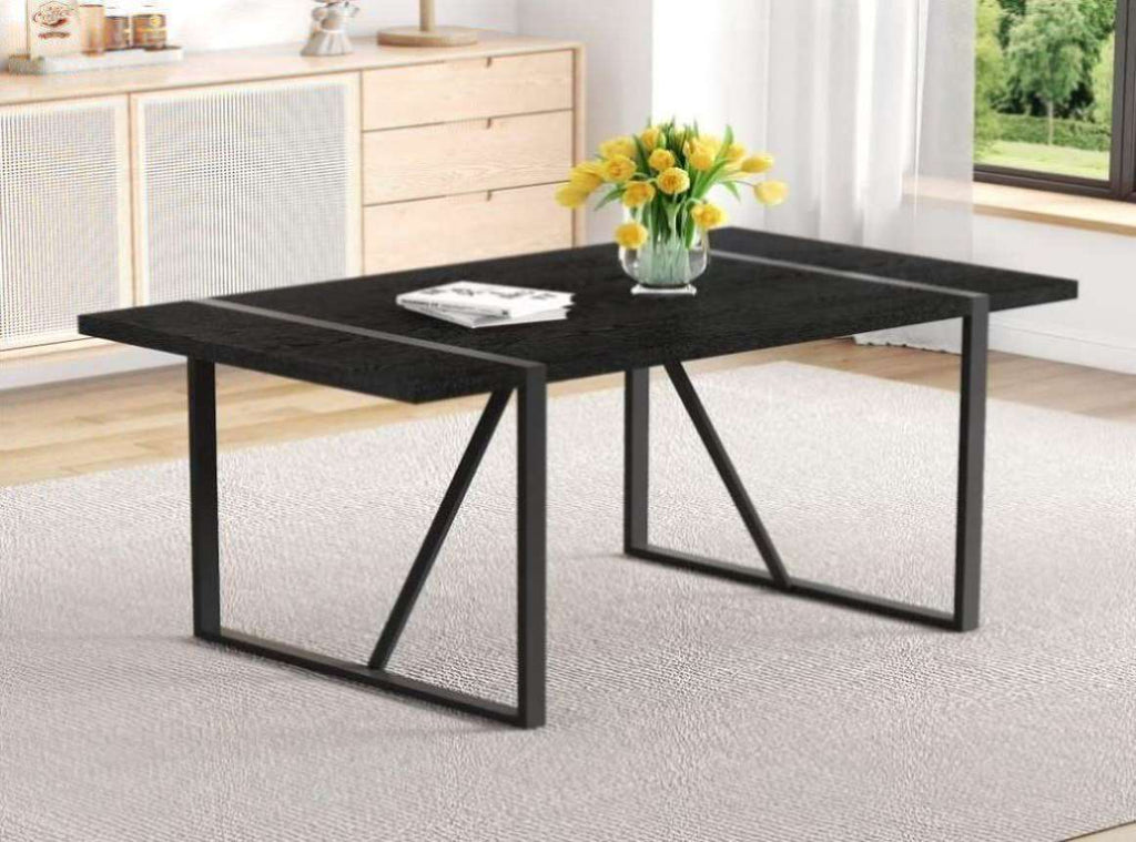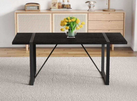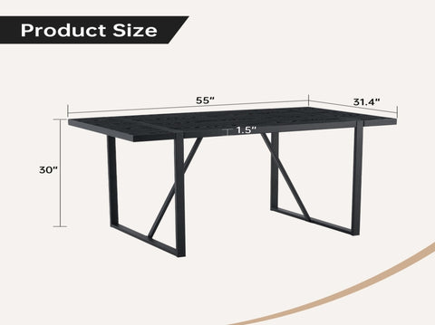 A 55-Inch minimalist retro rectangular dining table with a black textured top with Inset Rectangular W1151P378671