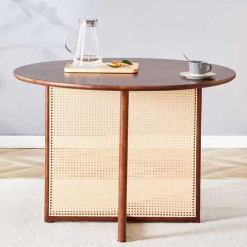 Chinese countryside retro walnut solid wood round table, simple modern imitation rattan table, W1512P355086