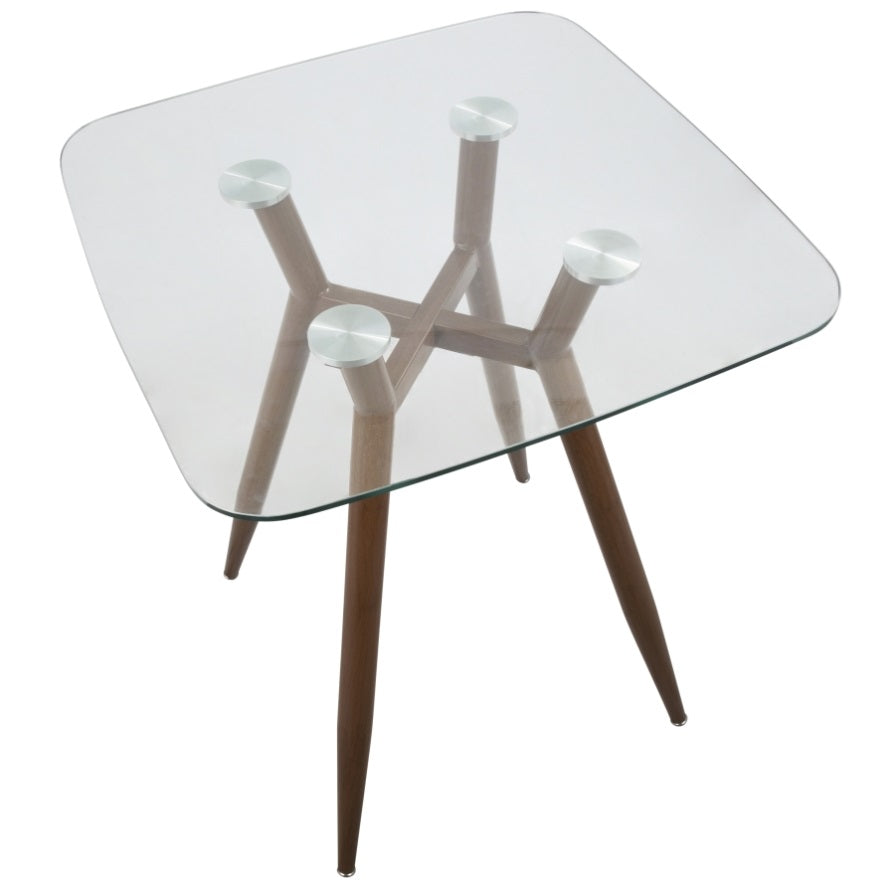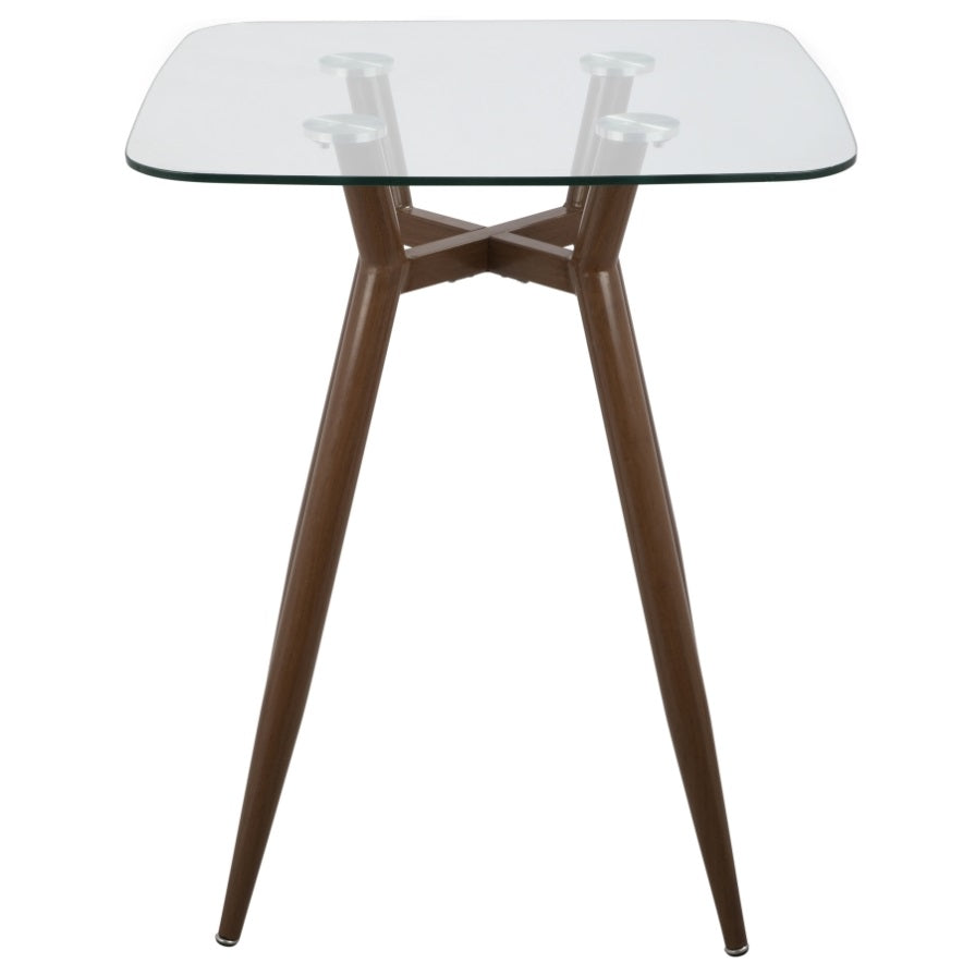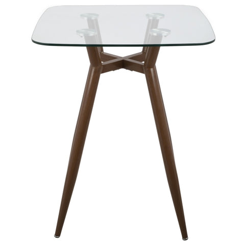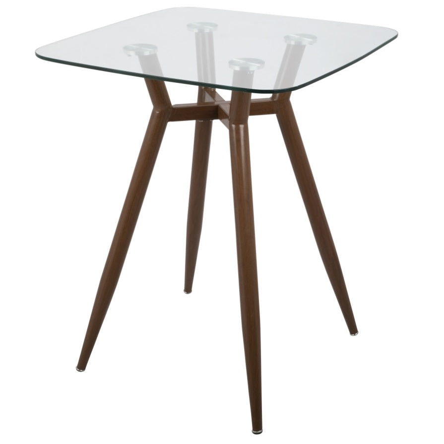 Clara Mid-Century Modern Square Counter Table with Walnut Metal Legs and Clear Glass Top by B202P223304