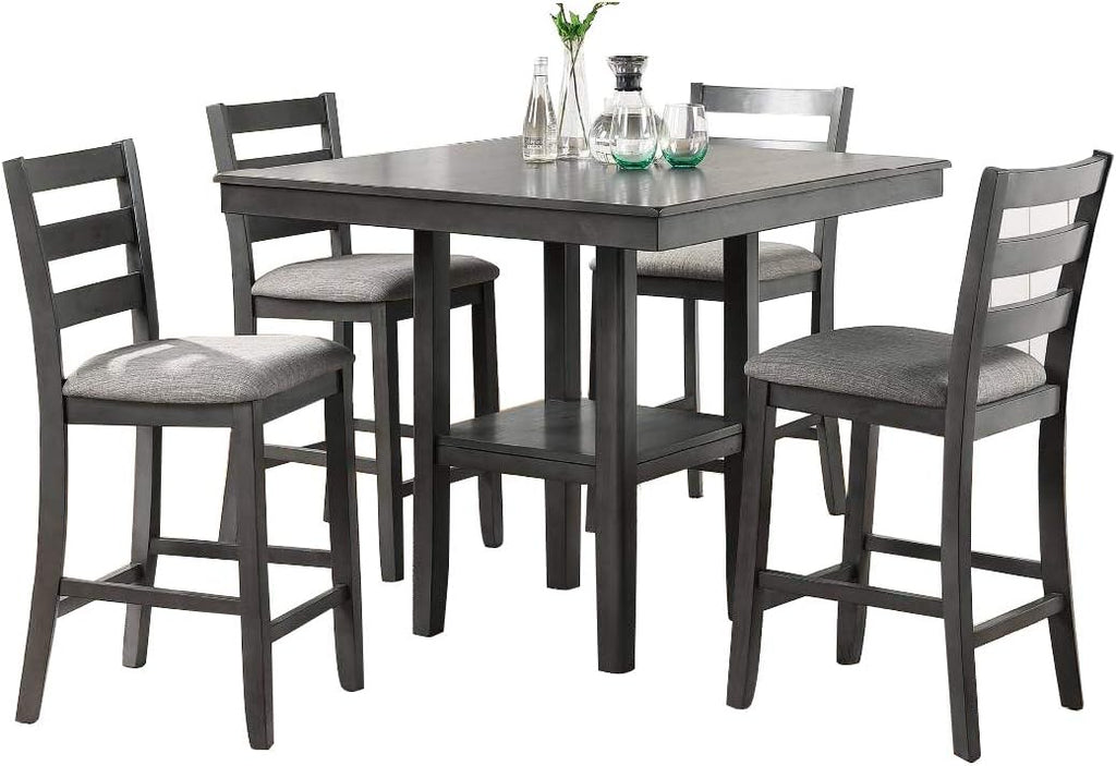 Classic Dining Room Furniture Gray Finish Counter Height 5pc Set Square Dining Table w Shelves B011119806